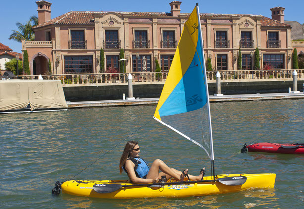 Whether it’s a day of casting, paddling, pedaling or sailing, Hobie’s brand-new Revolution® 11 has you covered. Modeled after her bigger brother – the Revolution 13 – the “Revo 11” features a slippery-yet-stable hull form, Hobie’s innovative MirageDrive® system, generous stowage and lashing configurations and an optional sailing kit, giving you the ability to go. The Revo 11’s featherweight hull accelerates now and her nimble-minded design and impressive turning radius allows you to adroitly stalk fish and confidently negotiate persnickety shoals or currents. Ideal for small-to-midsize users.